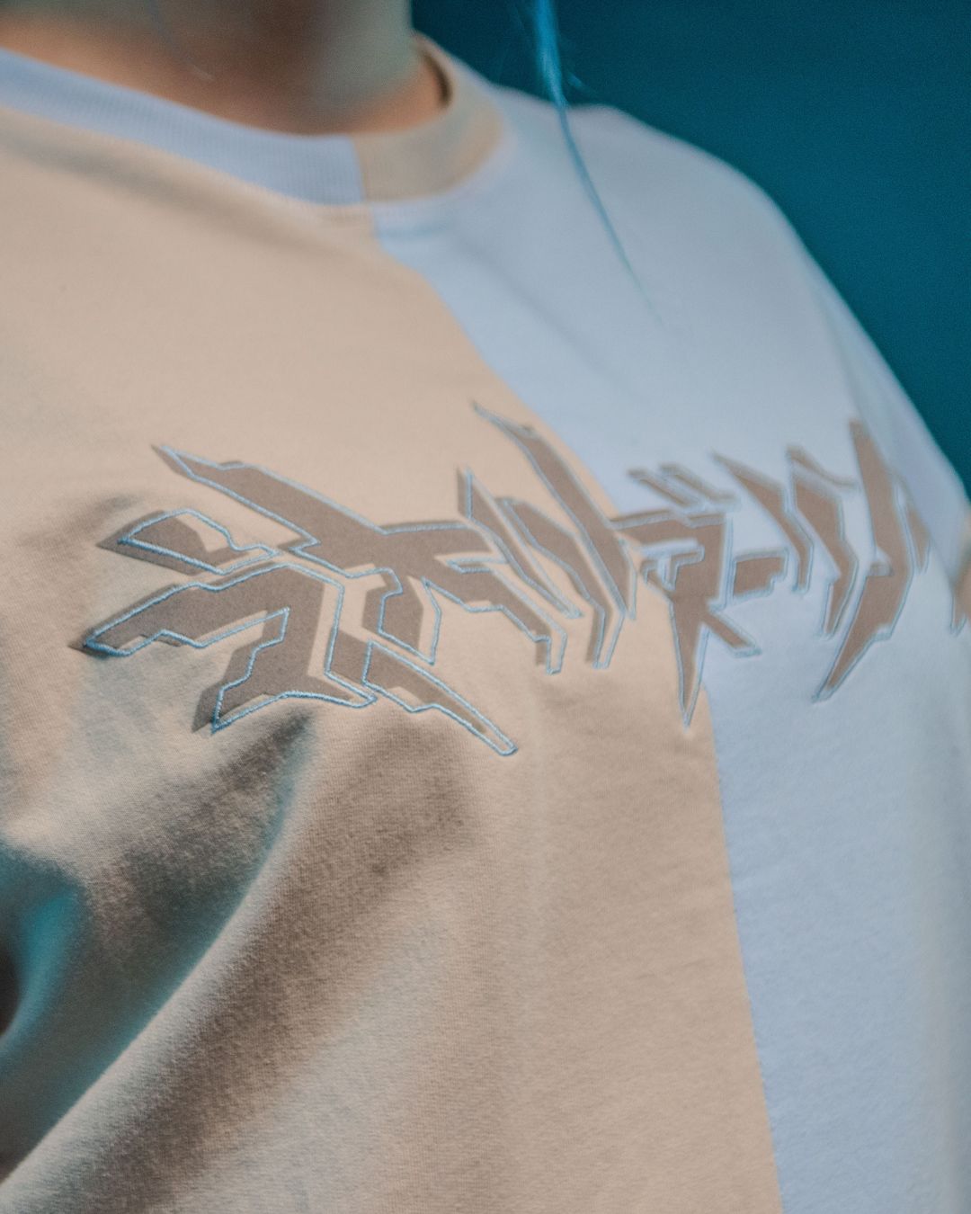 Screen-printed 'Neon Darling' Kanji Cyber Logo with embroidered off-set overlay