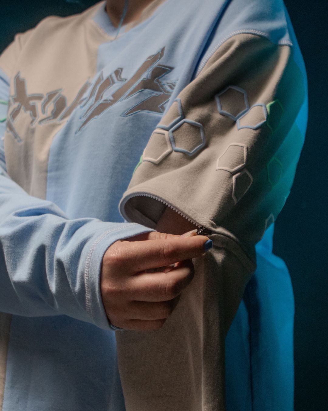 FEATURE: Convertible zip design — transforms from long sleeve to short sleeve t-shirt.